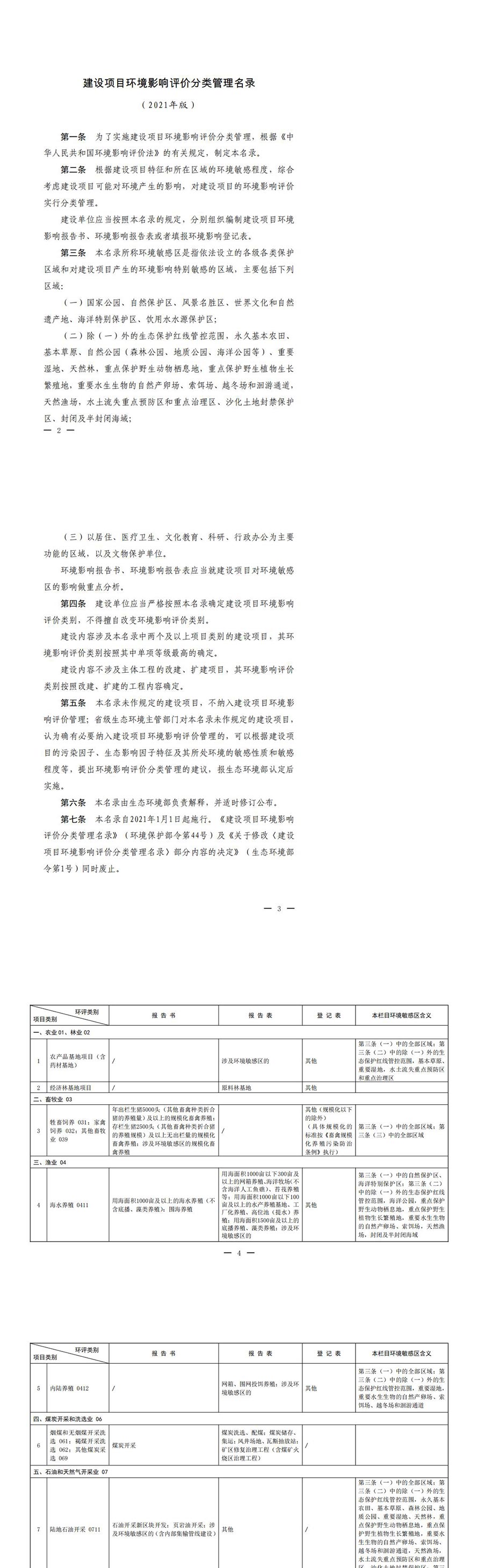 《建設(shè)項(xiàng)目環(huán)境影響評(píng)價(jià)分類管理名錄(2021年版)》已于2020年11月5日由生態(tài)環(huán)境部部務(wù)會(huì)議審議通過(guò),現(xiàn)予公布,自2021年1月1日起施行。